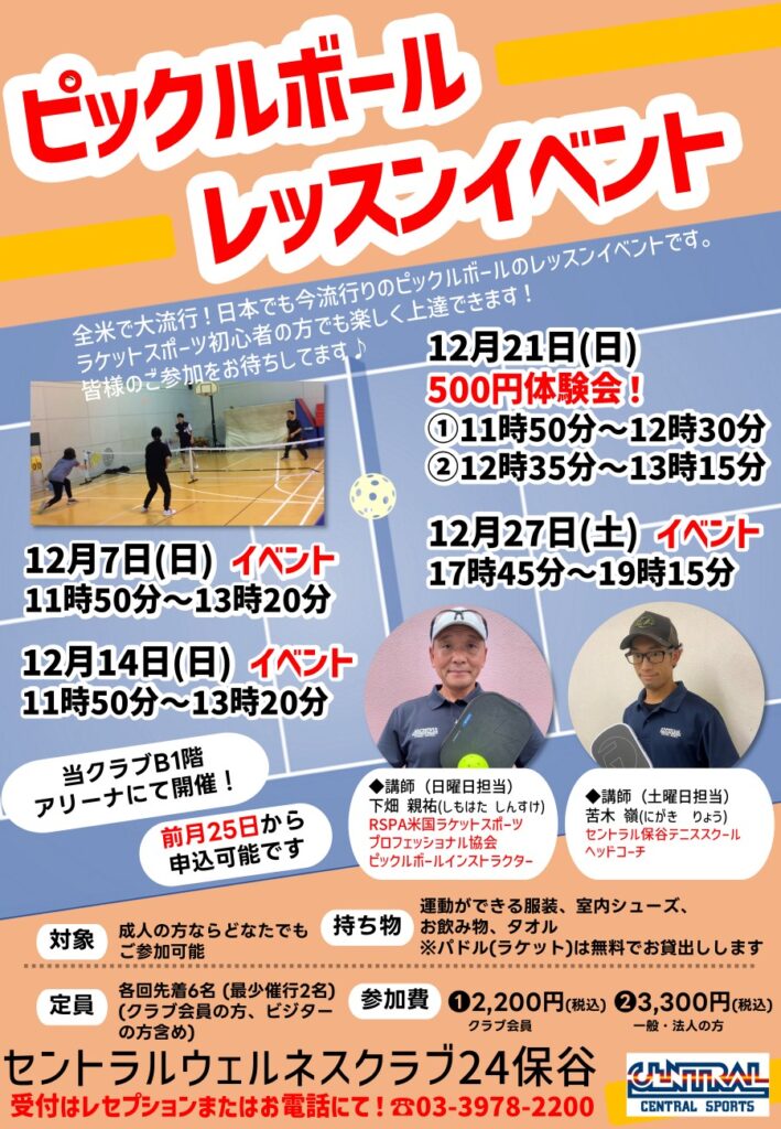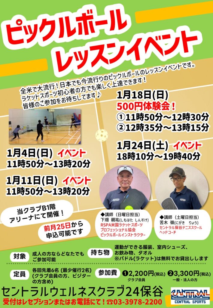 毎月隔週日曜日にてピックルボールのレッスンイベントを実施します。