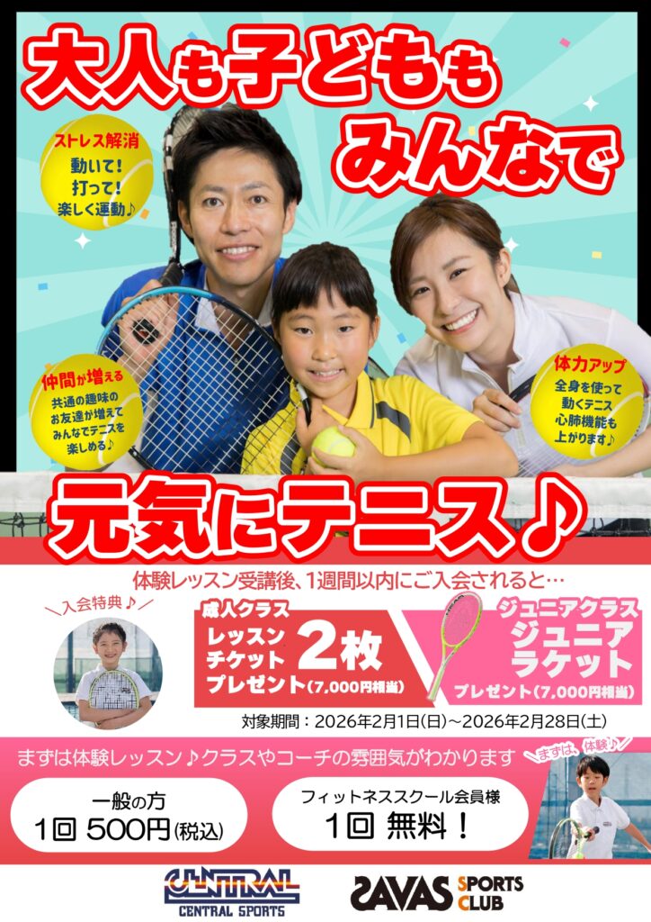 体験レッスン受付中|初心者大歓迎♪一緒にテニスを始めましょう! 2026.01.31 お知らせ セントラルフィットネスクラブ24溝ノ口校では、体験レッスン・見学をお待ちしております! ぜひお気軽にお問い合わせください。 体験レッスンのお問い合わせはこちらから ガット張機導入! 持ち込みガット、 早張りも可能になりました! 一覧へ戻る