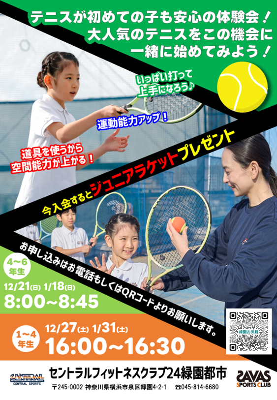 セントラルフィットネスクラブ緑園都市では小学生の方向けにテニスをお気軽に体験できる、お気軽体験会を実施しています。