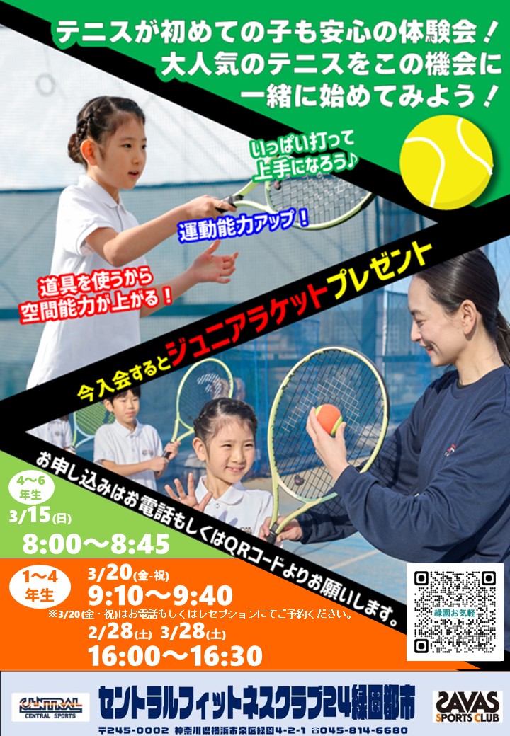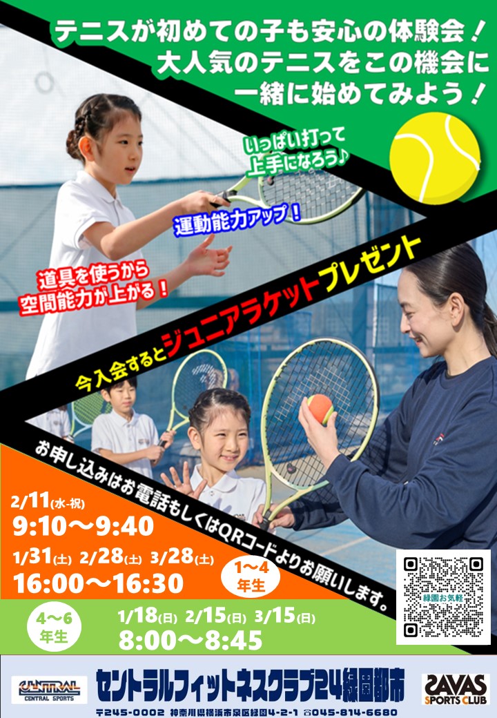 セントラルフィットネスクラブ緑園都市では小学生の方向けにテニスをお気軽に体験できる、お気軽体験会を実施しています。