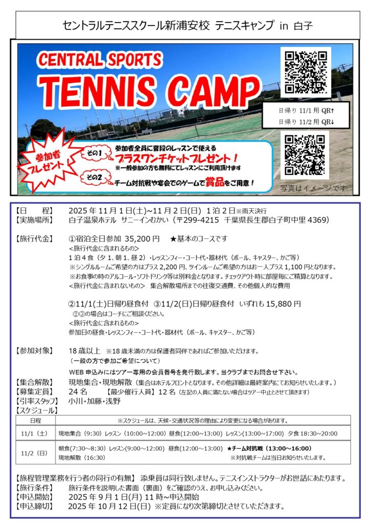 イベントレッスンのお知らせ♪ 2025.08.02 お知らせ 秋はイベント盛り沢山です! 皆様のご参加お待ちしてます♬ 体験レッスン受付中|初心者大歓迎♪一緒にテニスを始めましょう! テニスをやってみよう!大人の短期教室受付中! 一覧へ戻る