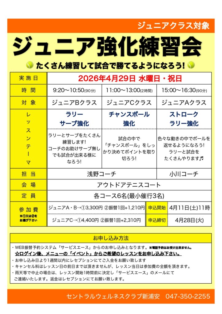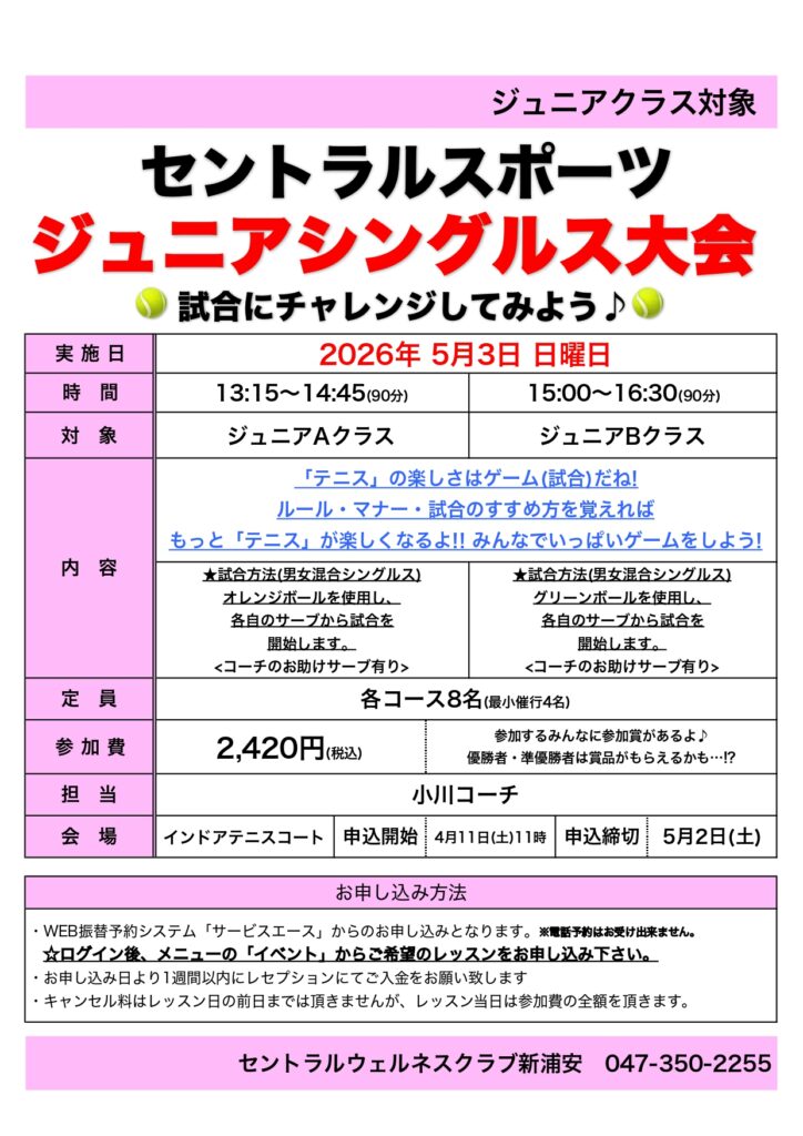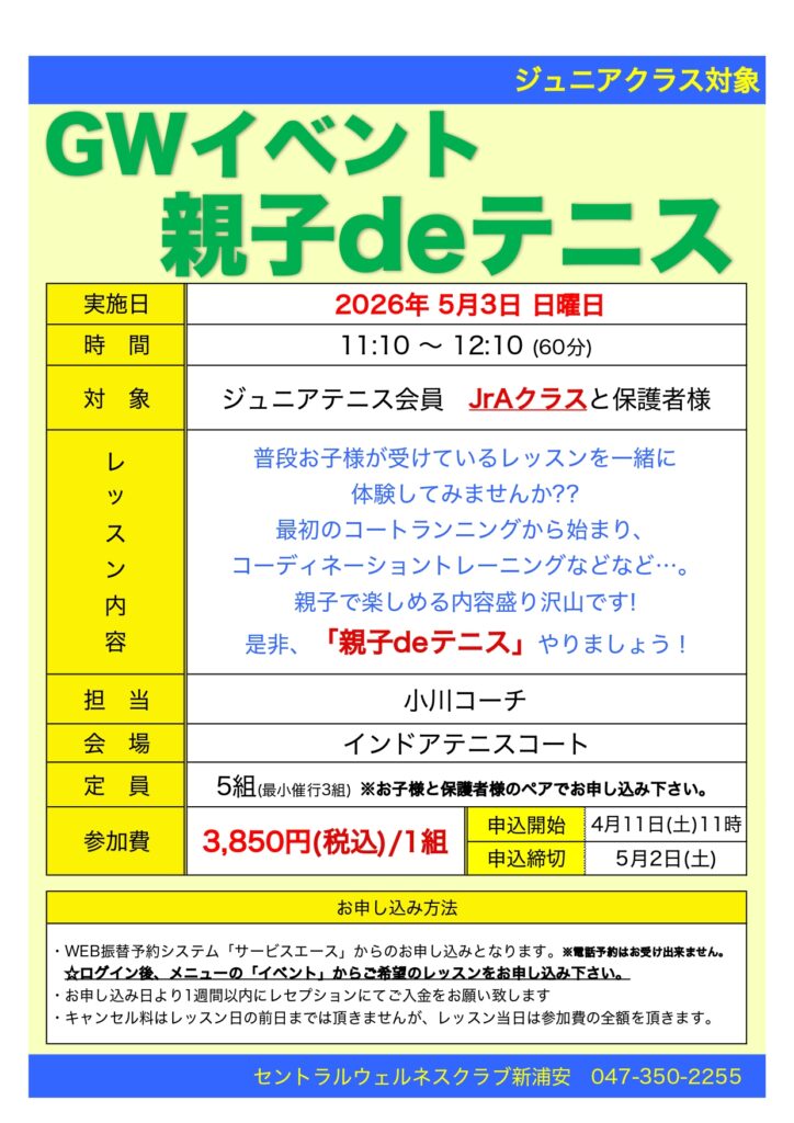 テニスをやってみよう!ジュニアテニス無料体験会!