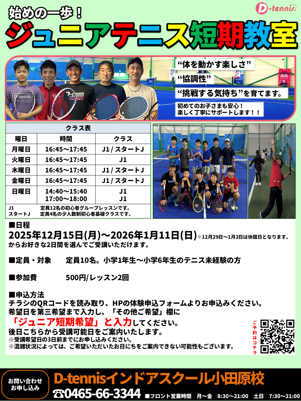 冬休みの楽しい思い出を、テニスコートで作りませんか?