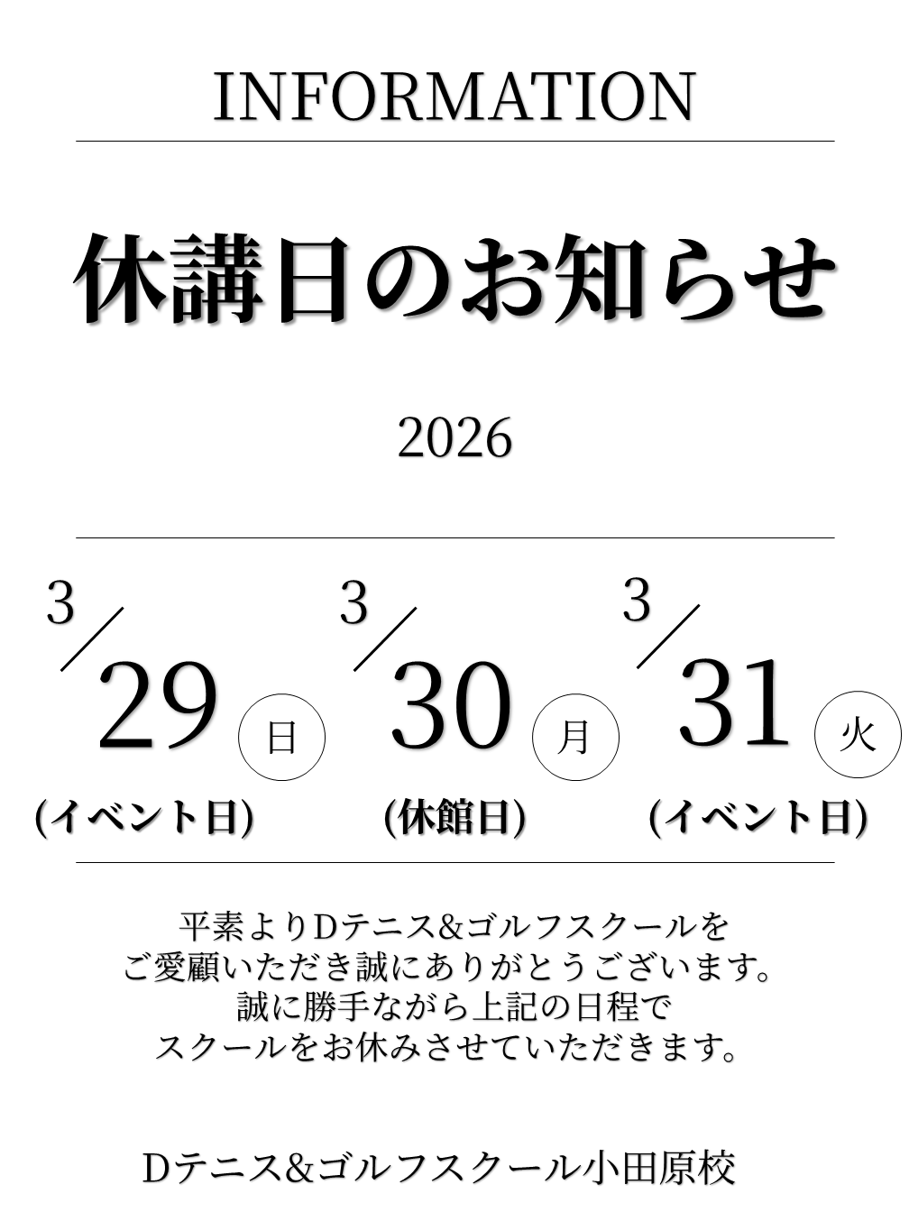 3月29日(日),3月31日(火)はイベントレッスン日となります。