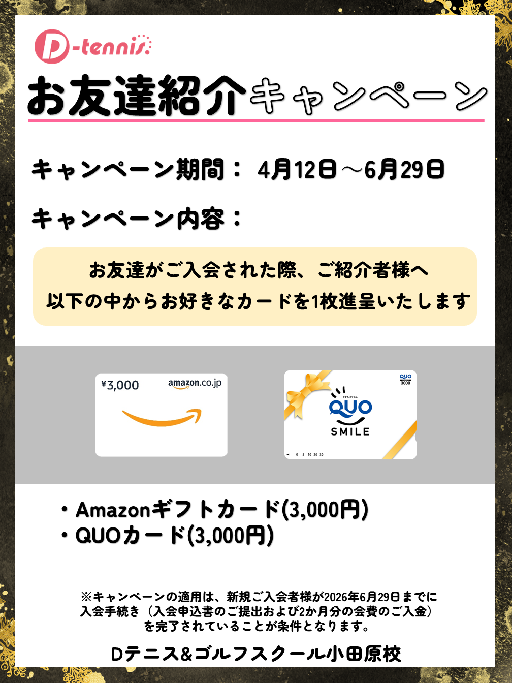 期間中にお友達をご紹介いただき、ご入会されますと、ご紹介者様へ