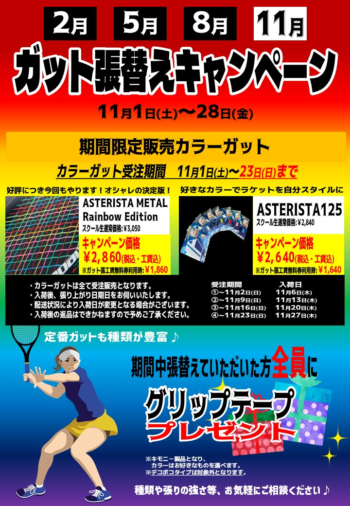 3カ月に一回の「ガットはりかえキャンペーン」が11月1日~28日の期間で実施致します!