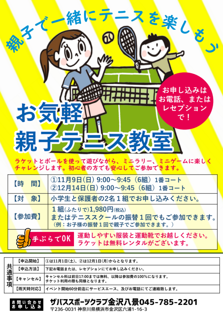 「何か運動を始めさせたいけど、テニスは初めてで不安…」という方、大歓迎!