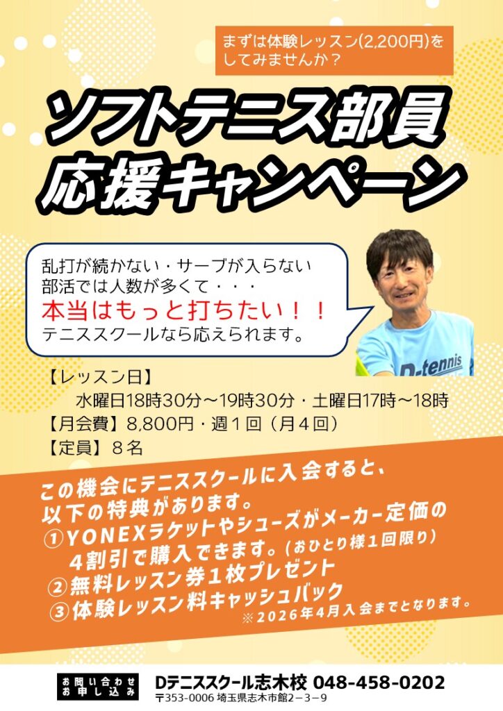 この機会にテニススクールに入会すると、以下の特典があります。